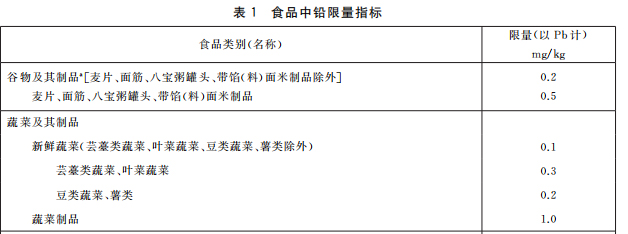 《食品中污染物限量》(GB 2762-2017)对以谷物及其制品为首的22类食品做了限量规定。部分限量结果如表1所示: